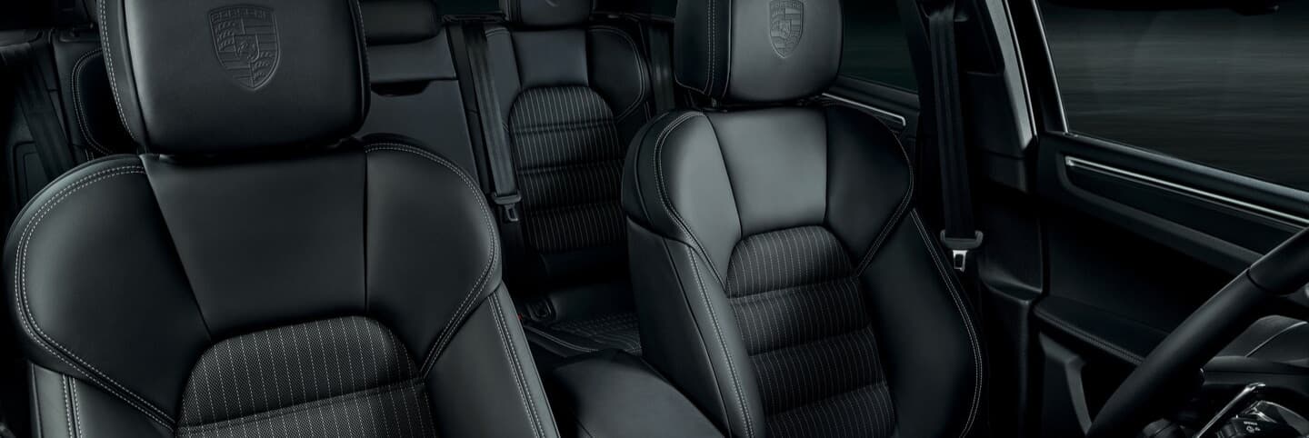 The Porsche Macan and Macan EV have understated interiors with standard synthetic leather upholstery. Gas-powered Macan models offer authentic leather seats as an option, while Macan EVs have strictly vegan-friendly leather-free upholstery.